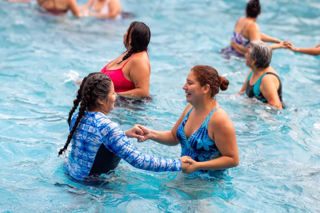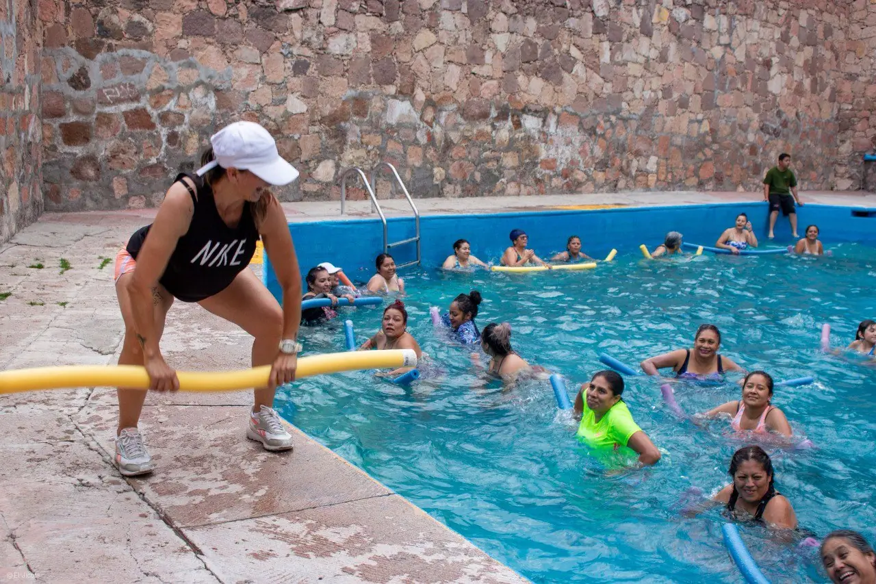 La sesión se llevó a cabo en la alberca de El Piojito, donde las asistentes vivieron una jornada llena de energía, alegría y dinamismo, guiadas por la promotora Analí González. Esta actividad combinó el ejercicio físico con el ritmo musical y el entorno acuático, promoviendo el bienestar físico y emocional entre las participantes.