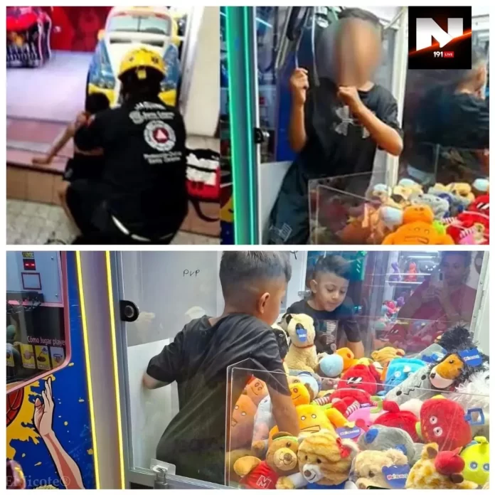 Momentos de tensión se vivieron la noche del lunes 25 de agosto en una plaza comercial de Santa Catarina, Nuevo León, cuando un niño de ocho años, identificado como Dorlan Alexander, quedó atrapado dentro de una máquina de peluches.