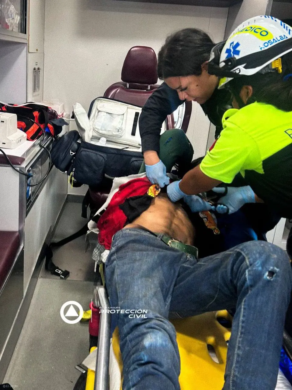 Los socorristas brindaron atención inmediata al lesionado en el punto del accidente, estabilizándolo en la medida de lo posible antes de proceder con su traslado a un centro hospitalario. Las heridas presentadas requerían atención especializada, por lo que fue ingresado a un nosocomio para continuar con su tratamiento médico.
