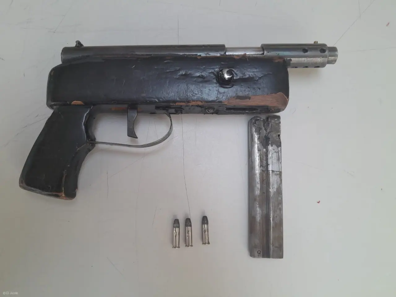 Los oficiales localizaron al individuo señalado y, tras realizarle una entrevista e inspección, encontraron entre sus pertenencias un arma de fuego de fabricación casera, comúnmente conocida como “hechiza”.