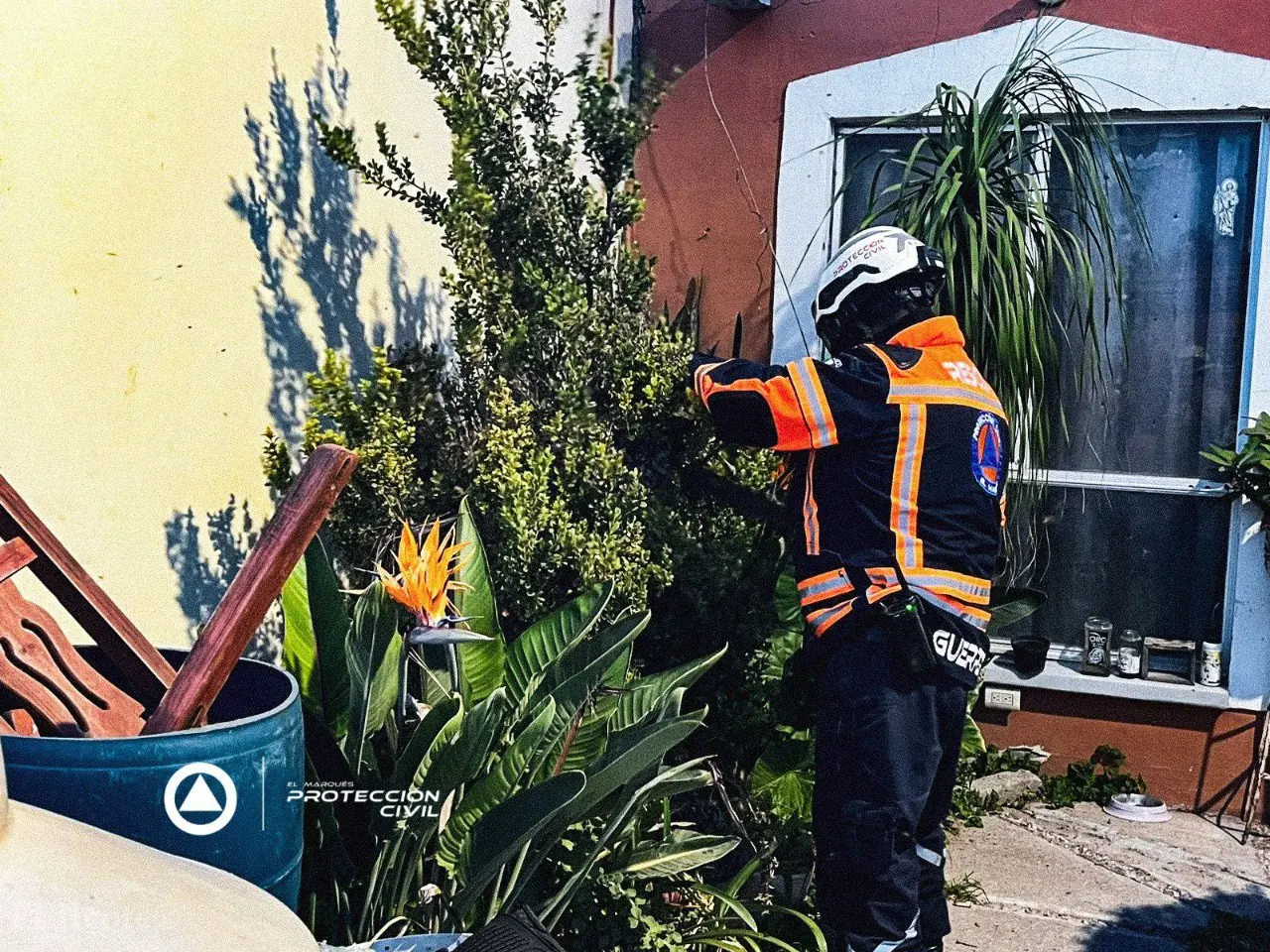 Elementos de Protección Civil de El Marqués atendieron un reporte ciudadano relacionado con la presencia de un panal de avispas en un domicilio ubicado en la comunidad de Hacienda La Cruz.