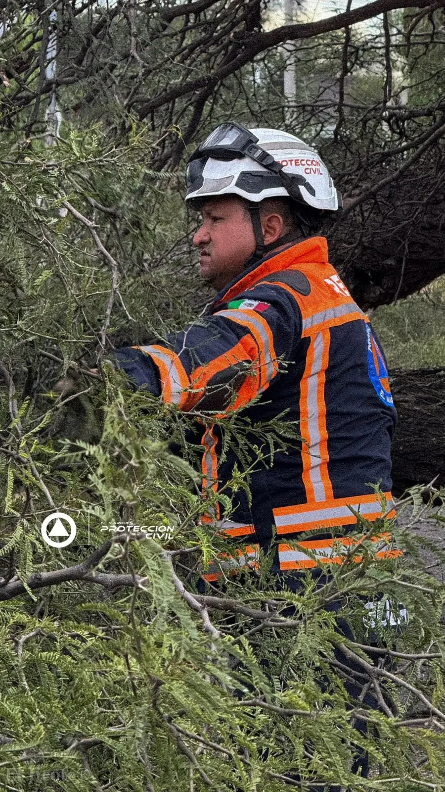 La Protección Civil de El Marqués atendió el reporte de un árbol caído sobre un vehículo en la carretera estatal 210, frente a Villas La Piedad. Para la atención del incidente, se contó con el apoyo de Servicios Públicos de El Marqués y la Secretaría de Seguridad Pública Municipal, quienes realizaron los trabajos correspondientes para retirar el árbol y garantizar la seguridad en la zona.