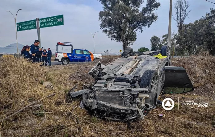 Elementos de Protección Civil El Marqués atendieron un accidente vehicular tipo volcadura registrado a la altura del kilómetro 10 de la carretera estatal 540.