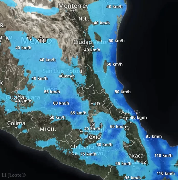 De acuerdo con el más reciente análisis climático, los vientos se han fortalecido a lo largo de la vertiente del Golfo de México, extendiéndose gradualmente hacia el interior. Se prevé que, en las próximas 6 a 12 horas, se mantengan rachas de viento de fuertes a intensas en el Bajío, centro, occidente, sur y sureste del territorio nacional, alcanzando velocidades de entre 40 y 75 kilómetros por hora. En regiones específicas del Istmo y Golfo de Tehuantepec podrían registrarse ráfagas superiores a los 100 km/h.