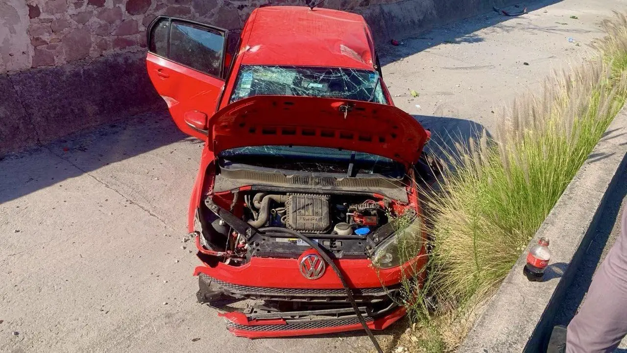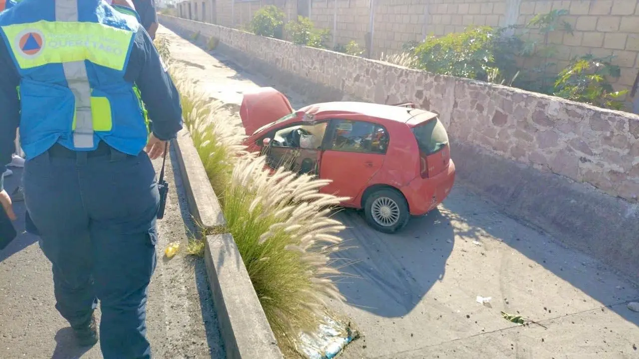 La tarde del jueves se registró un accidente en el Fraccionamiento Viñedos, en Querétaro, luego de que un automóvil saliera del camino y cayera al interior de un canal pluvial.