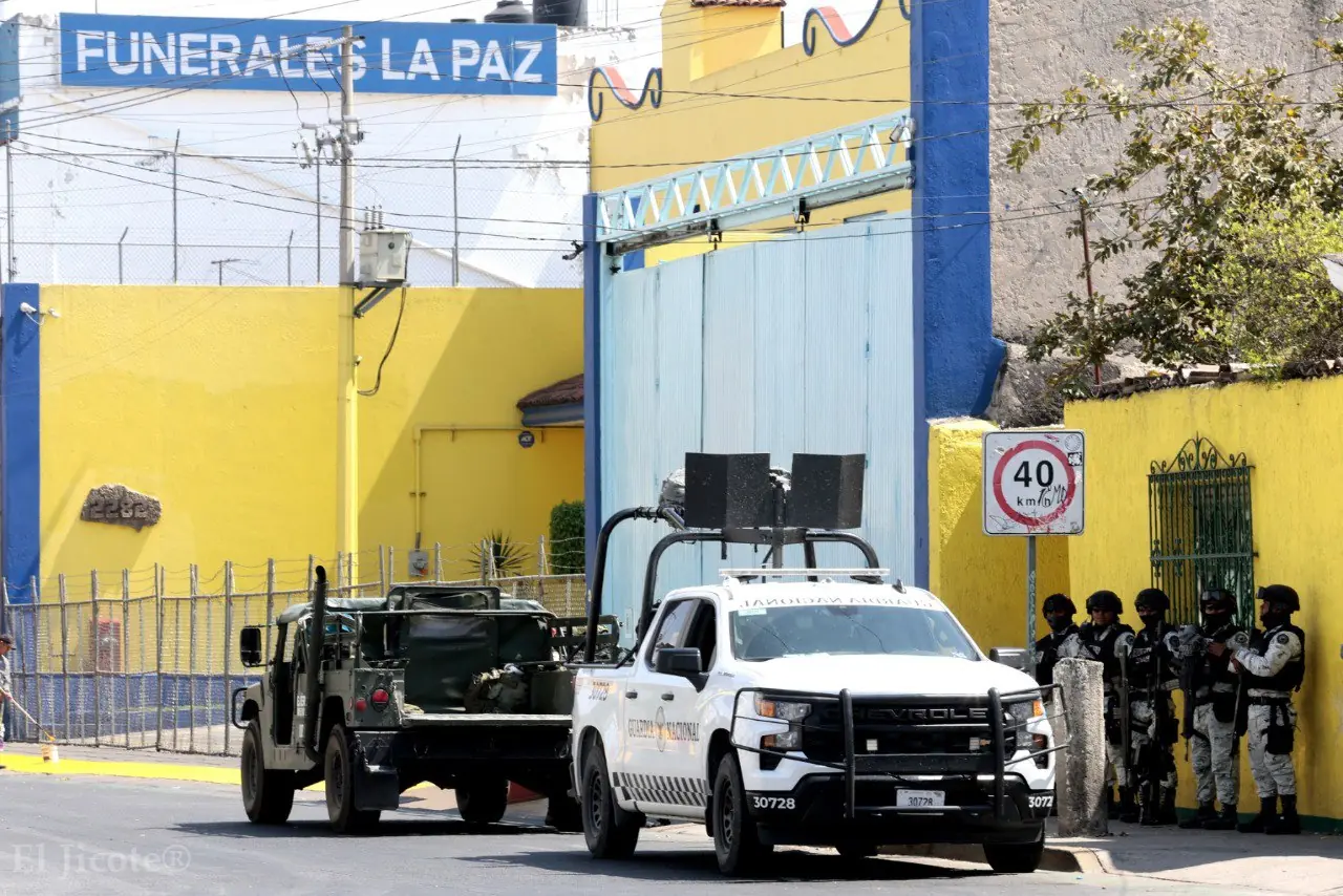 A una semana de la muerte de Nemesio Oseguera Cervantes, alias “El Mencho”, decenas de camionetas con elementos del Ejército y la Guardia Nacional resguardan una funeraria en Guadalajara, luego de que su cuerpo fuera entregado el sábado a sus familiares por la Fiscalía General de la República (FGR).