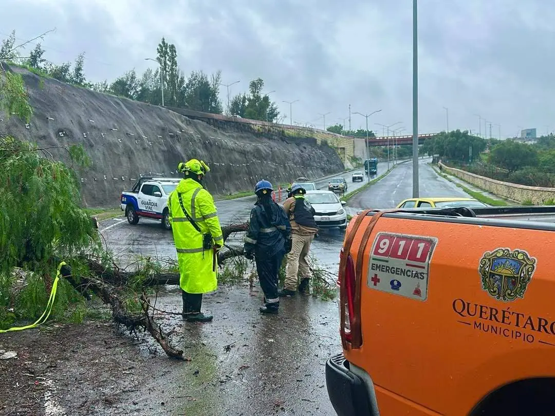 En respuesta a esta situación, personal de Protección Civil se trasladó al sitio y, en coordinación con elementos de la Guardia Vial de la Secretaría de Seguridad Pública Municipal, así como trabajadores de Servicios Públicos Municipales de Querétaro y la Coordinación Estatal de Protección Civil, iniciaron labores de intervención para remover el árbol caído y liberar la vía.