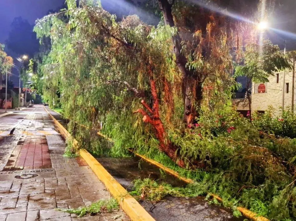 La noche del domingo, a las 20:30 horas, se registró la caída de un árbol en la colonia El Cortijo, incidente que bloqueó momentáneamente el paso vehicular en la zona. Afortunadamente, no se reportaron daños a vehículos, viviendas ni a la infraestructura eléctrica.