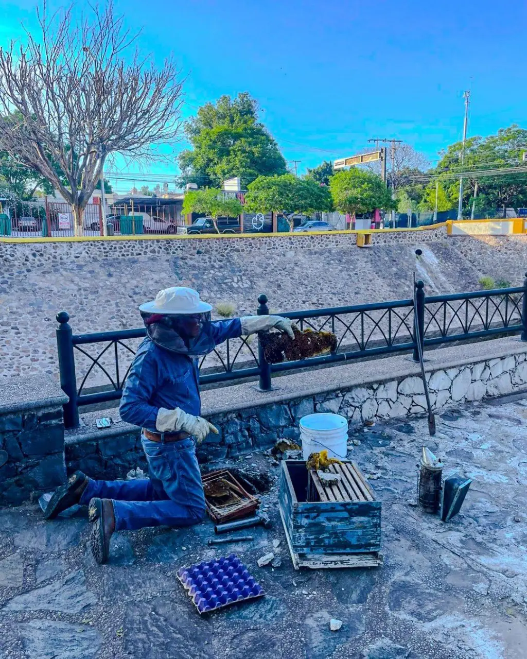 Reubican enjambre de abejas localizado en registro eléctrico sobre Avenida Universidad