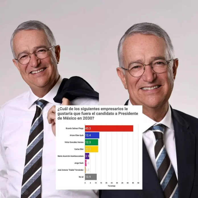 El empresario Ricardo Salinas Pliego, dueño de Grupo Salinas, encabeza la más reciente encuesta de México Elige sobre posibles aspirantes a la presidencia en 2030, con una amplia ventaja frente a otros contendientes mencionados.