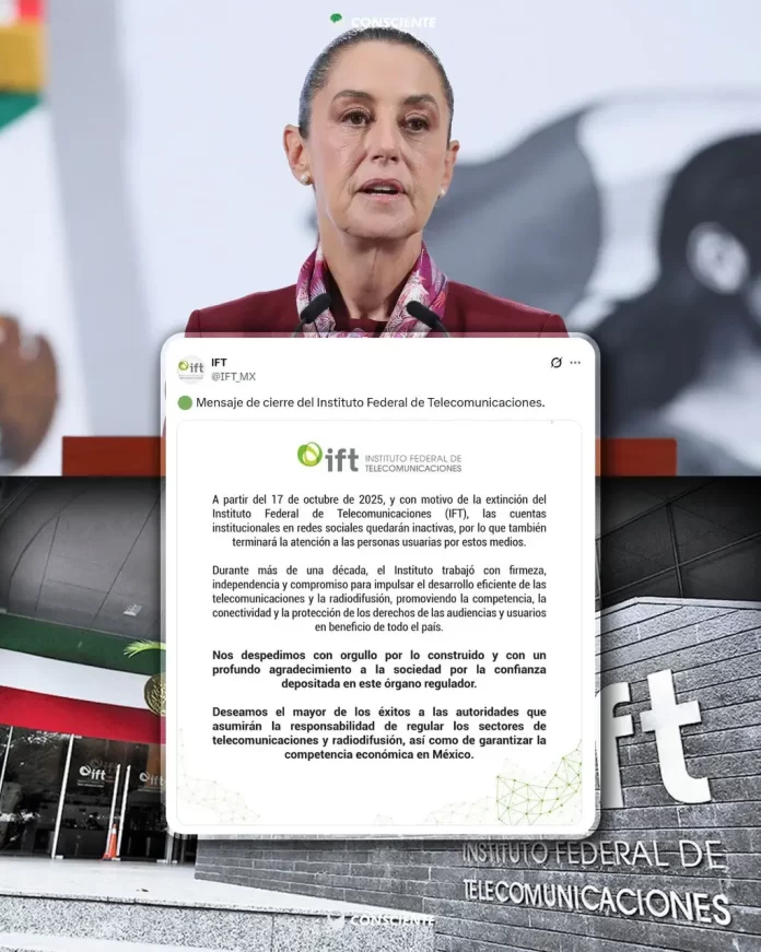 El Instituto Federal de Telecomunicaciones (IFT) anunció oficialmente su cierre definitivo, marcando el fin de una era de más de una década en la regulación de las telecomunicaciones en México. A partir del 17 de octubre de 2025, el organismo dejará de operar, sus redes sociales quedarán inactivas y se suspenderá la atención a usuarios.