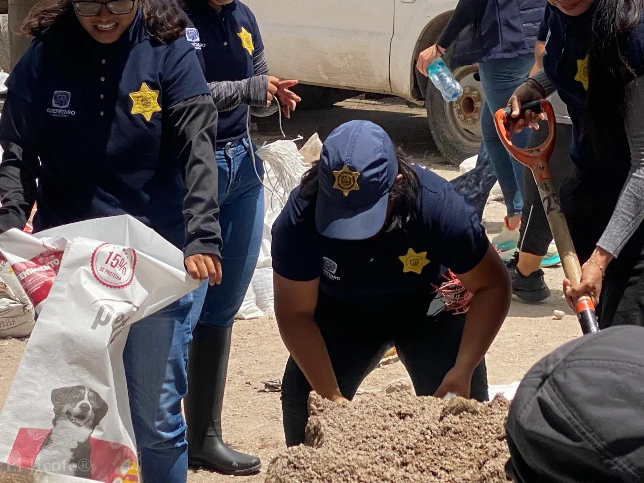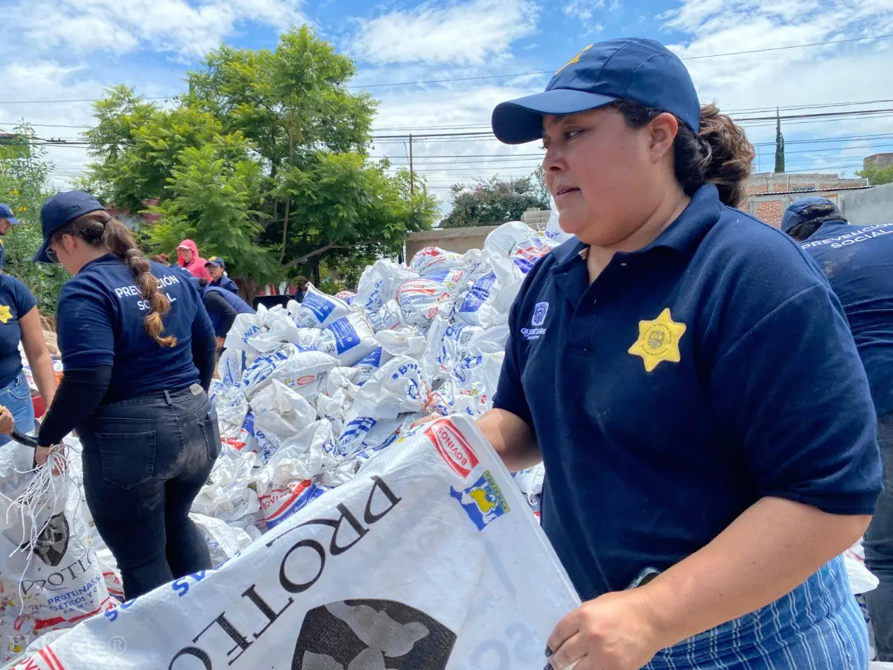La Secretaría de Seguridad Pública Municipal de Querétaro (SSPMQ) desplegó a su personal directivo, administrativo y operativo para brindar apoyo en el llenado y distribución de costales en zonas vulnerables de las delegaciones Felipe Carrillo Puerto y Félix Osores Sotomayor.