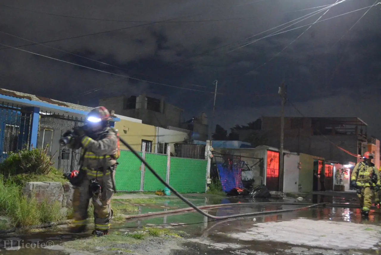 Al lugar acudieron policías municipales, bomberos, elementos de Protección Civil municipal y estatal, así como paramédicos del CRUM, quienes atendieron al lesionado y sofocaron el fuego, que ya había consumido gran parte de la vivienda y afectado un vehículo.