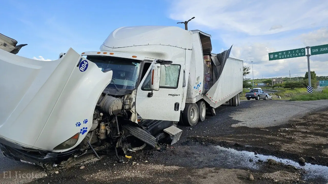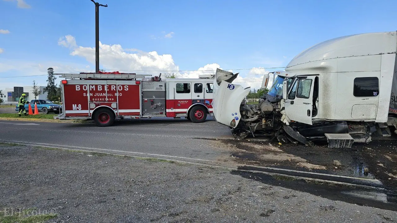 La tarde de este viernes, un tráiler que circulaba por el acceso de Paseo Central, en San Juan del Río, perdió los frenos y cruzó de manera intempestiva al carril contrario, provocando un accidente vial de consideración. De acuerdo con reportes preliminares, la pesada unidad terminó impactando a dos vehículos particulares que transitaban en sentido opuesto, generando una importante movilización de los cuerpos de emergencia.
