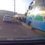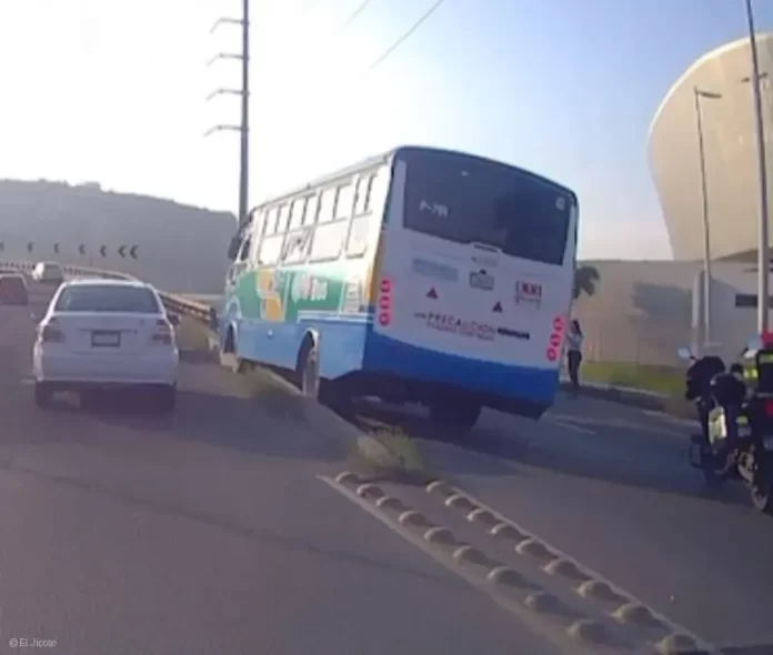 De acuerdo con el reporte ciudadano recibido por este medio, tras el impacto, el autobús terminó subido sobre la estructura de contención del puente, mientras que el automóvil particular recibió todo el golpe en la parte trasera, quedando severamente dañado.