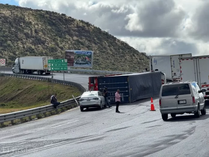La volcadura de un tráiler registrada en el Puente Distribuidor Buenavista, en las inmediaciones del Parque Industrial Querétaro, ha generado tráfico lento en la zona durante las últimas horas. El incidente movilizó a cuerpos de emergencia y autoridades viales, quienes trabajan para retirar la unidad y garantizar la seguridad de los automovilistas.