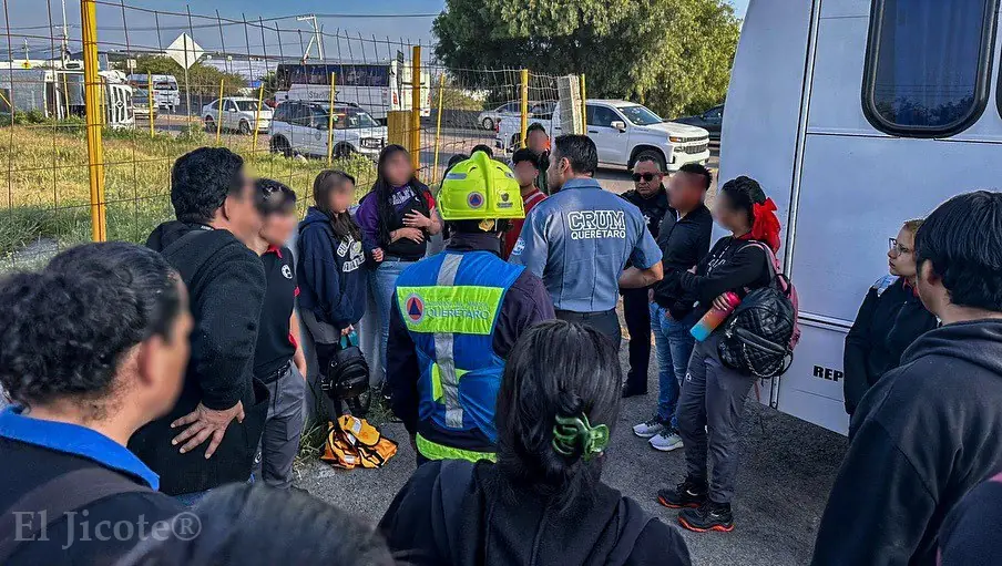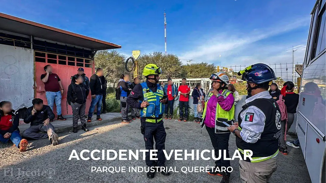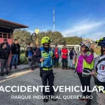 Elementos de Protección Civil atendieron un accidente vehicular registrado en el Parque Industrial Querétaro, donde un transporte de personal volcó durante su trayecto.