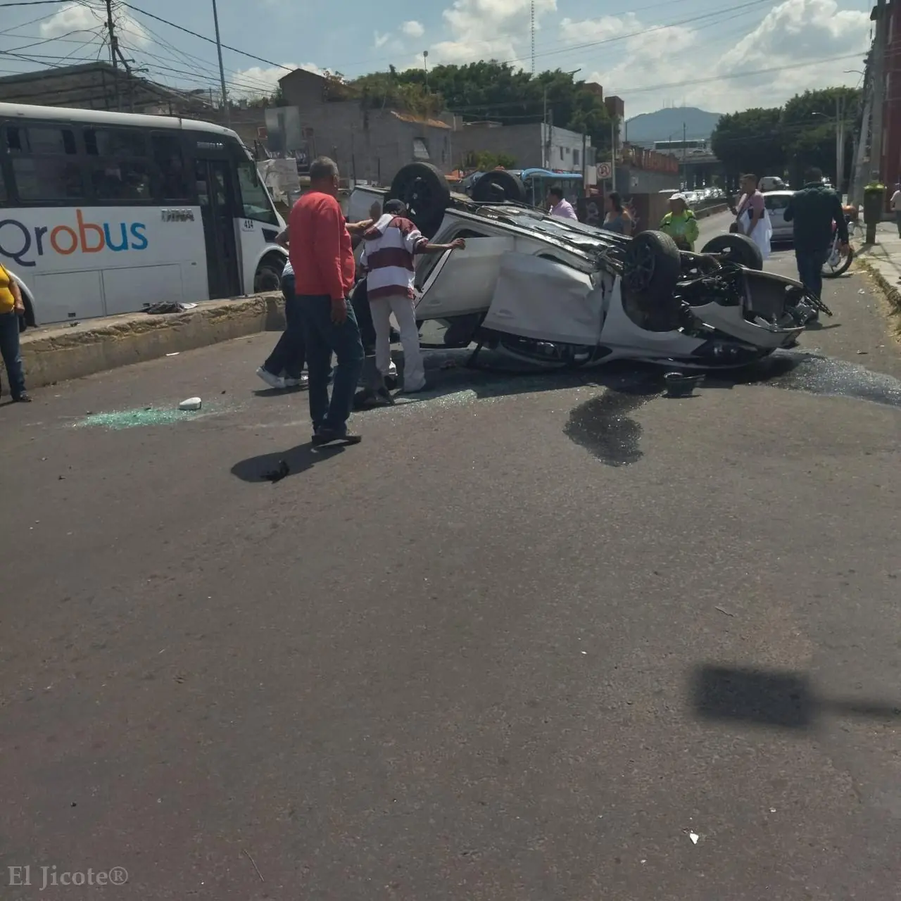 De acuerdo con los primeros reportes, el conductor perdió el control del automóvil, lo que ocasionó que la unidad terminara volcada sobre la vialidad. Elementos de Protección Civil y cuerpos de rescate acudieron rápidamente al lugar para brindar apoyo y realizar las maniobras necesarias para asegurar la zona y evitar mayores riesgos a los automovilistas que circulaban por el área.