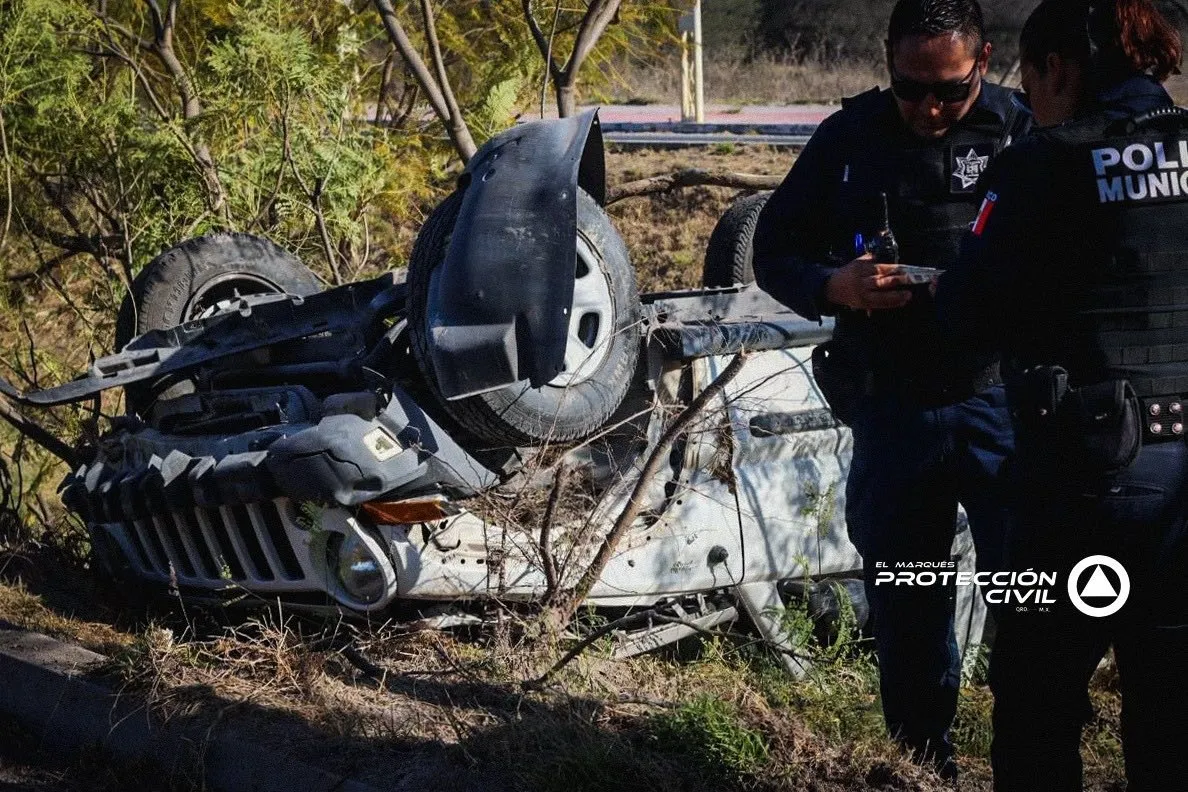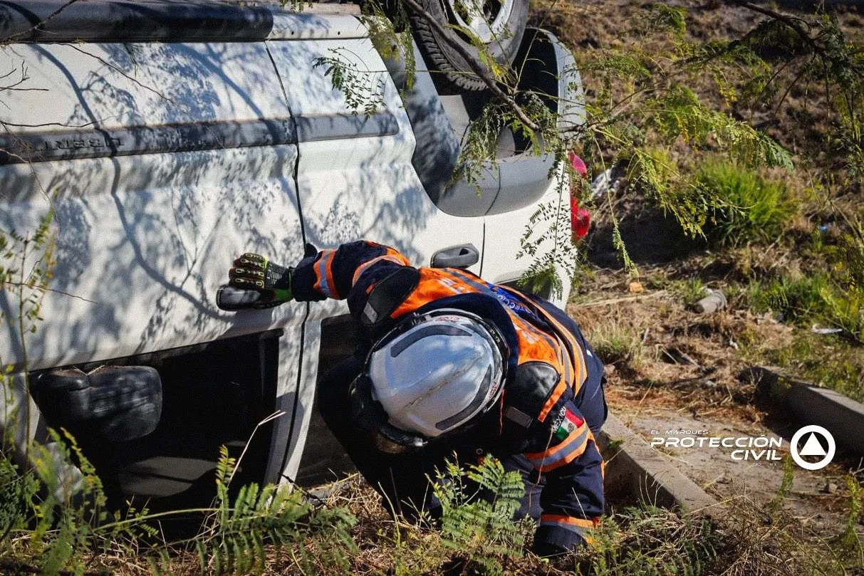La Protección Civil El Marqués informó sobre un accidente vehicular tipo volcadura registrado en Ejército Mexicano, a la altura de Libertadores.