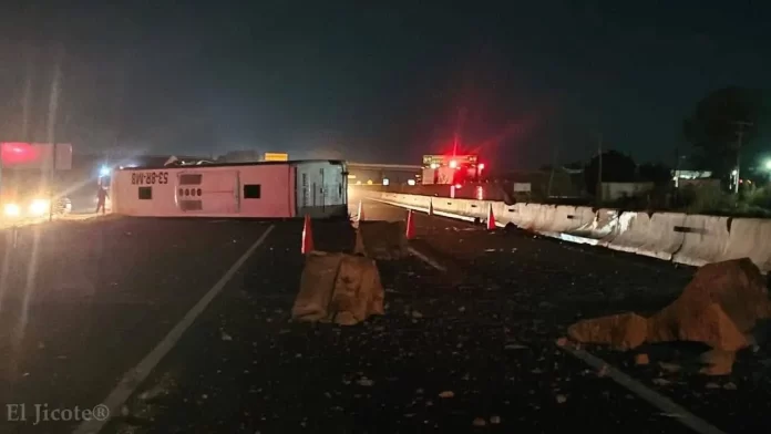 Tras la volcadura, la unidad quedó atravesada sobre ambos carriles, lo que provocó el cierre total de la circulación en ese punto durante varias horas, generando afectaciones al tránsito vehicular.